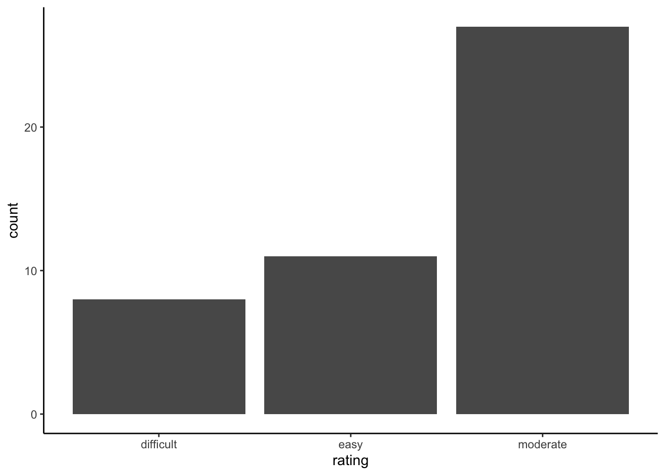 - For example: how many hikes are there in each category? are any categories more common than others?