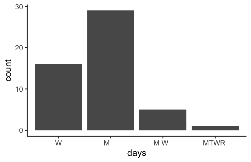 Suppose we wanted to get separate columns for the first and last names of each course instructor in classes. Try doing this using str_sub(). But don’t try too long! Explain what trouble you ran into.