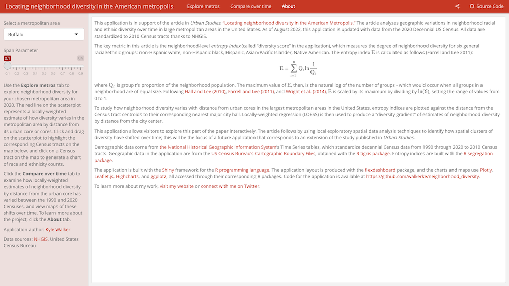 The neighborhood diversity app was made with the Shiny toolkit available in the shiny R package.